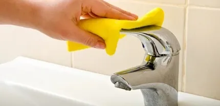 - Для борьбы с известковым налетом налейте немного средства против накипи на бумажное полотенце и оберните им носик (излив). Оставьте на 10-15 минут, затем смойте большим количеством воды и насухо вытрите.