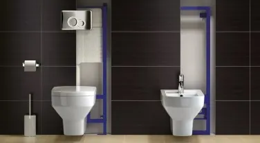 Рамная инсталляция является более сложной, но и более надежной, так как она крепится к стене и зашивается гипсокартоном. Сама по себе рамная инсталляция фиксируется специальной фурнитурой к стене и полу одновременно, что делает ее более устойчивой.
