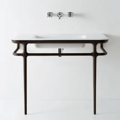 На изящество работают консоли, обрамляющие раковины IL BAGNO итальянской фабрики Antonio Lupi. Их высокие ореховые ножки становятся утонченным акцентом в интерьере, подтверждая, что коллекция предлагает богатство интереснейших дизайнерских решений.