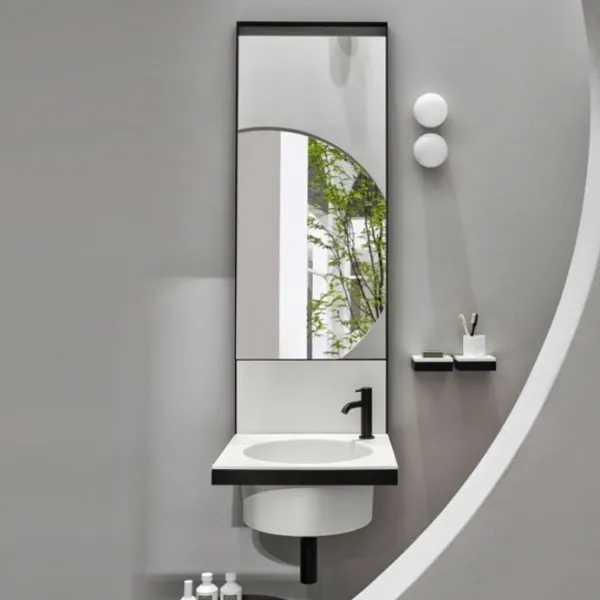 Эстетическое богатство удачно дополняют зеркала, в которых отражаются прямые линии и сверкающие поверхности. Кстати, в погоне за разнообразием и оригинальностью классическую белую отделку можно заменить на небесно-голубую, фисташковую и 15 других. Раковина Cielo Elle готова покорить вашу ванную комнату своей нежной красотой.