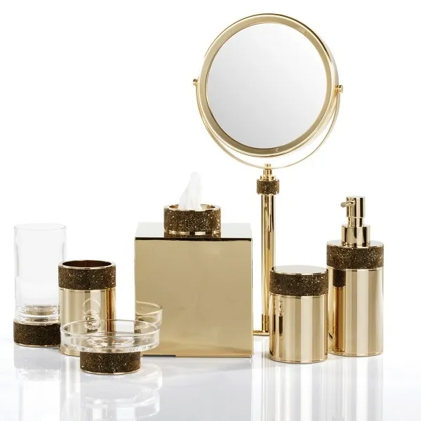 И оцените эргономику: стекло мыльниц и стаканов усилено, если не удастся случайно разбить, баночки и настольные дозаторы очень вместительны и плотно закрываются специальными крышечками, у косметического зеркала высокая ножка, чтобы смотреться в него было удобно. Решая купить аксессуары Decor Walther ROCKS золото, вы делаете беспроигрышный выбор, всерьез, надолго и в пользу неоклассики.