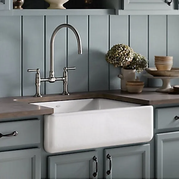 Способна ли универсальность быть привлекательной и запоминающейся? Да, и эту концепцию всем своим видом доказывают встраиваемые кухонные мойки с фартуком WHITEHAVEN американской фабрики Kohler. С широким или узким фартуком, они выполняются в самых разных размерах – так, чтобы вы могли подобрать модель, которая подойдет ну просто идеально. С глубокими чашами (целых 9 дюймов), прямоугольными, но обтекаемыми за счет легкого закругления бортами, они смотрятся современно и эстетично.