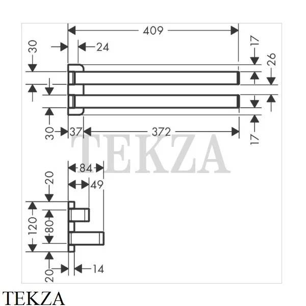 Двойной полотенцедержатель 409 мм Axor Universal для настенного монтажа.
