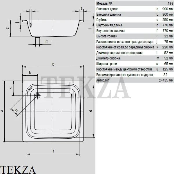 Поддон изготовлен из 3,5 мм стали и покрыт белоснежной эмалью.