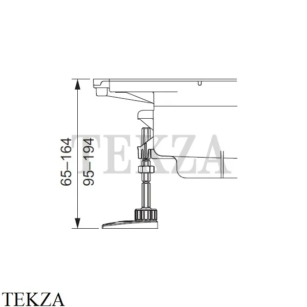 Монтажные опоры для сифона TECEdrainprofile, для быстрого выравнивания по высоте и фиксации положения при установке на уровне с необработанными поверхностями. Диапазон регулировки сифона 95–194 мм (расстояние от нижнего края опор до верхнего края сифона или верхнего края бесшовного пола).