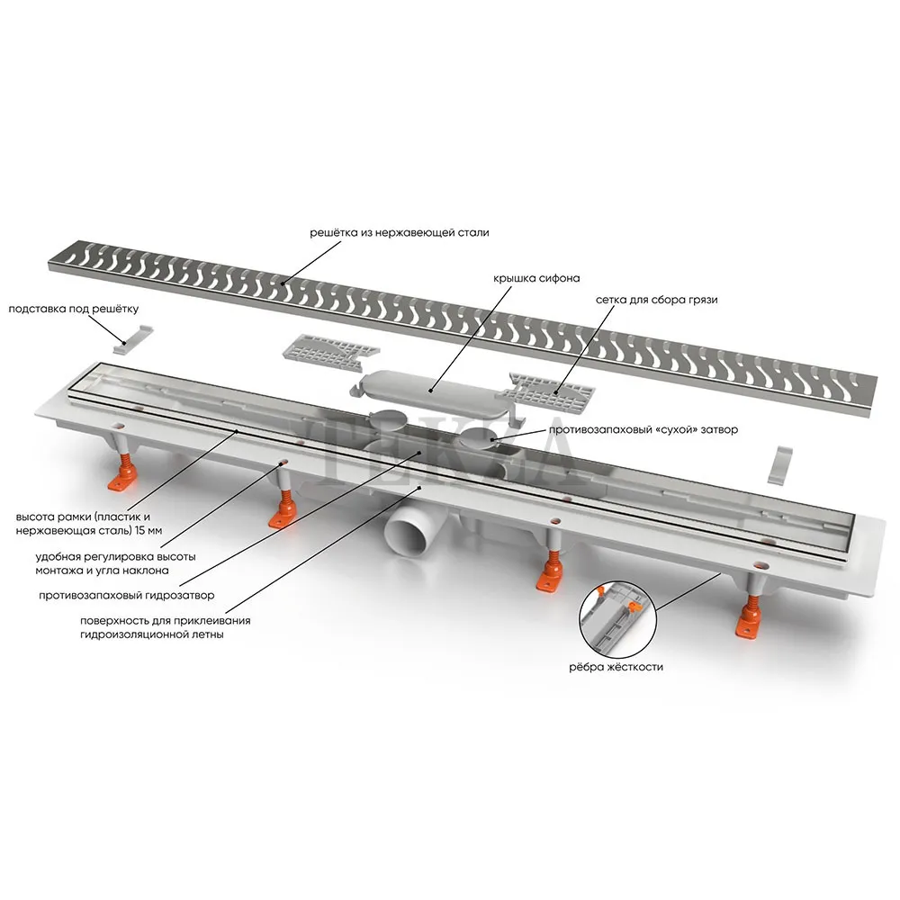 Стоимость указана за комплект дренажного канала V650K, Хром глянцевый