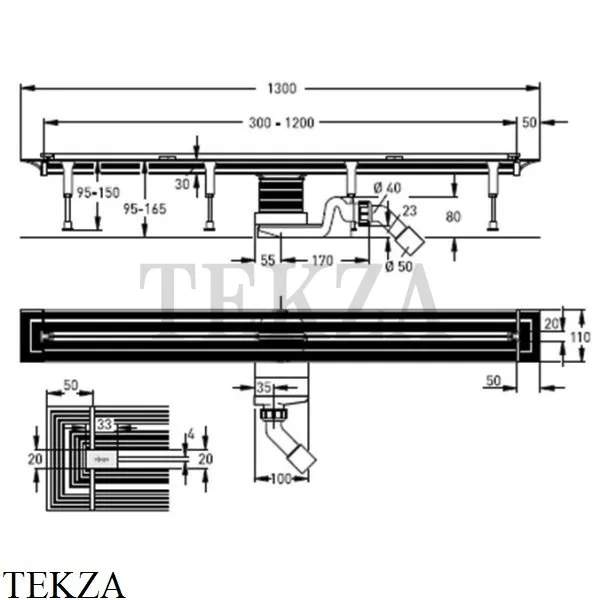 монтажная высота 95-165 мм,