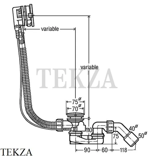 Слив-перелив для ванны с сифоном Viega Simplex Trio 728014 для ванны с центральным сливом, наполнение через узел перелива.