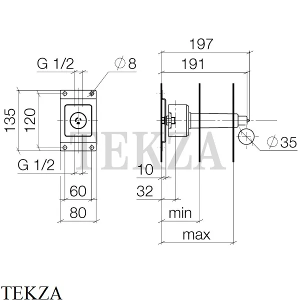 Корпус для скрытого монтажа 1/2", закрывание вправо Dornbracht.
