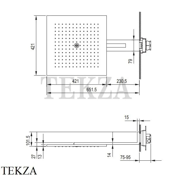 Встраиваемая часть настенного многофункционального верхнего душа Fantini.