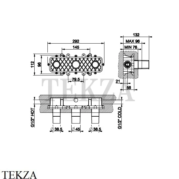 Встраиваемая часть 45089-031 Gessi для смесителя на 3 отверстия.