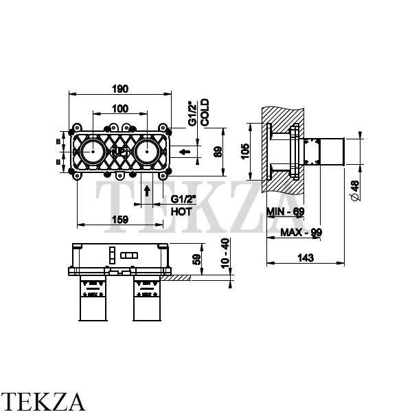 Встраиваемая герметичная часть для настенного смесителя Gessi 54198
