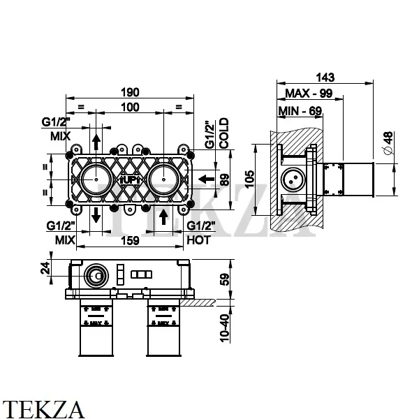 Встраиваемая часть для смесителя для душа с переключателем Gessi
