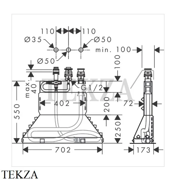 - состоит из: скрытая часть, шланг для душа, Secubox