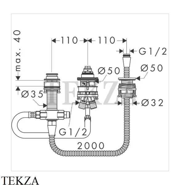Скрытая часть Hansgrohe однорычажного смесителя на край ванны на 3 отверстия 13439180