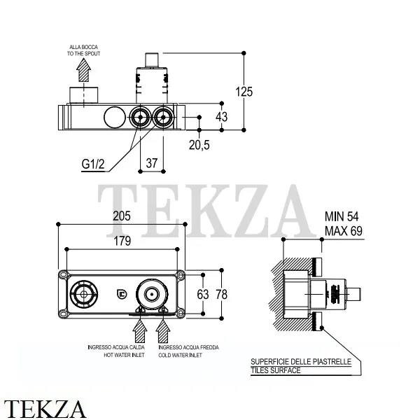 Встраиваемая часть для настенного смесителя Ritmonio.