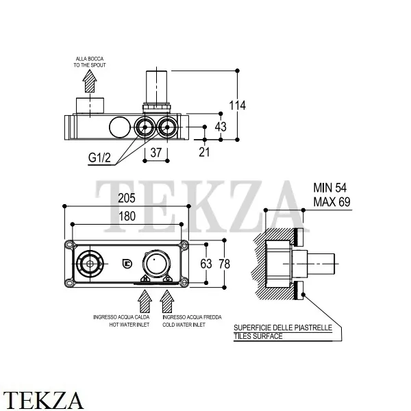 Встраиваемая часть для настенного смесителя Ritmonio.