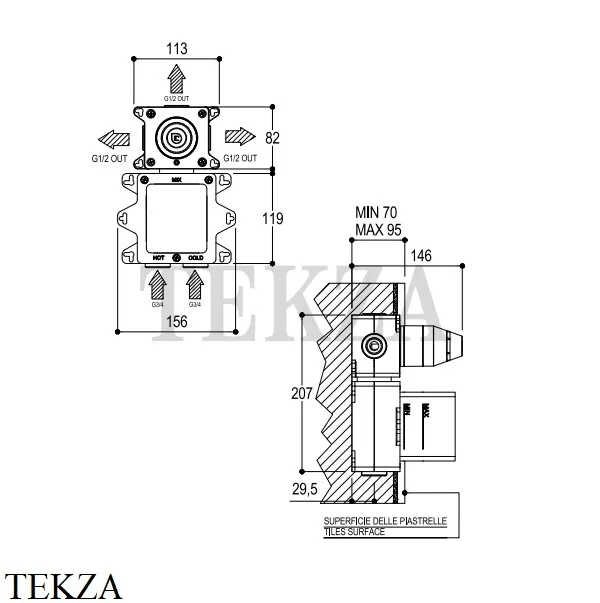 Встраиваемая часть для термостатического смесителя для душа Ritmonio.