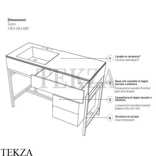 Консоль с керамической раковиной CIELO MILANO с выдвижным ящиком.