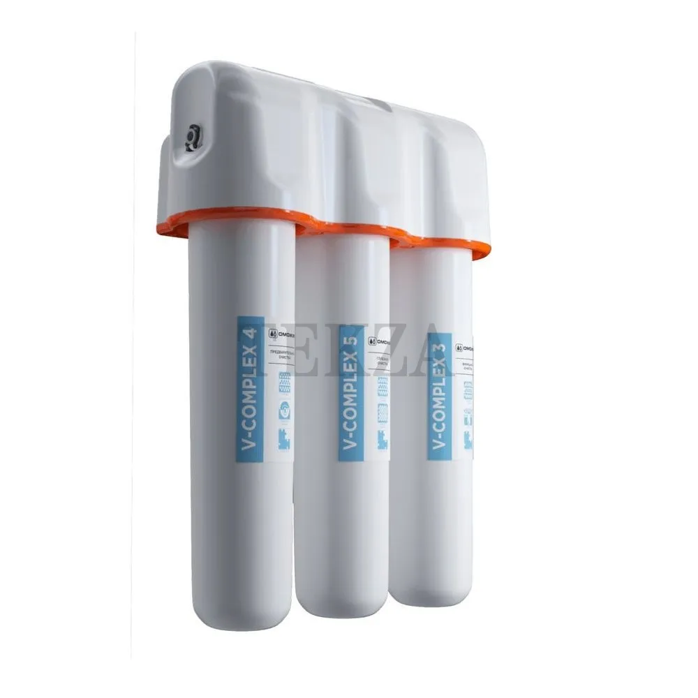 •Солей жесткости. Модуль V-Complex 4 производит предварительную очистку воды. Отфильтровывает содержащиеся в воде твердые частицы размером от 5 мкм, а также песок и ржавчину. Модуль V-Complex 5 эффективно удаляет органические примеси, тяжелые металлы и активный хлор. Отфильтровывает частицы размером от 3 мкм. Очищает воду от тяжелых металлов. Содержит серебро в активной ионной форме. Модуль V-Complex 3 способствует окончательному удалению активного хлора, тяжелых металлов и органических веществ. Отфильтровывает частицы размером от 0.8 мкм. Содержит серебро в активной ионной форме.