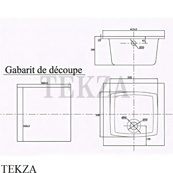 Квадратная мойка из керамогранита Herbeau LUBERON.