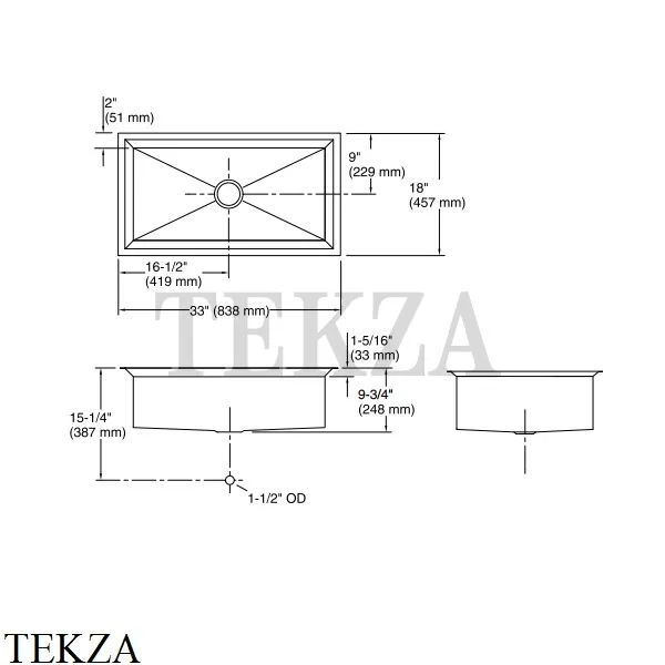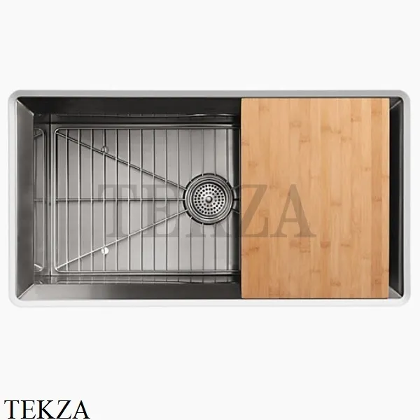 Встраиваемая кухонная мойка с большой чашей Kohler Poise в комплекте с решеткой на дно мойки и разделочной доской.