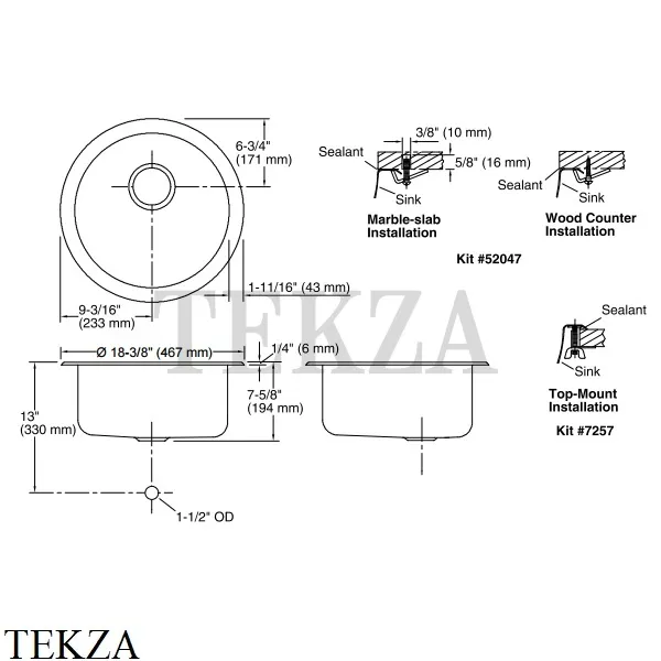 Круглая встраиваемая кухонная мойка Kohler Undertone Lyric с плоским дном.