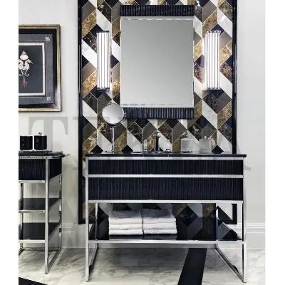 Интегрированные стеклянные раковины 38 цветов. Встроенные керамические раковины белого или черного цвета, поставляются с мраморной столешницей в 10 отделках.