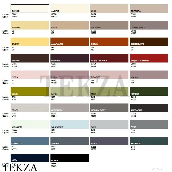 С внешней стороны - лакокрасочное покрытие глянцевое или матовое в 38 вариантах цвета, внутри – матовое лакокрасочное покрытие черного цвета.