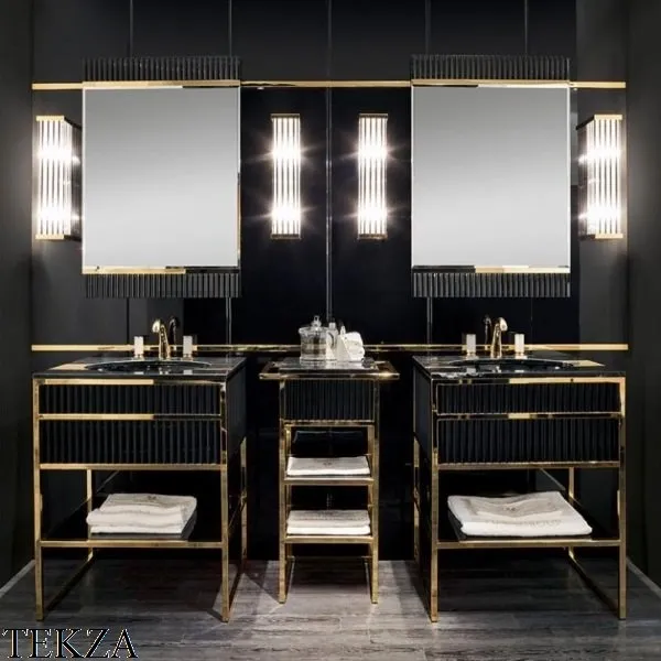 Рама консолей для раковин, колонн и банкеток изготовлены из гальванизированной стали в двух отделках: хром или золото.
