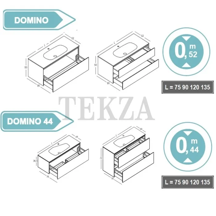 Варианты ширины тумбы: 75, 90, 120, 135