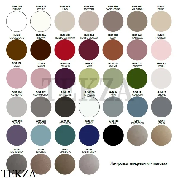 ЛАКОКРАСОЧНАЯ ОТДЕЛКА: Мебель изготовлена из МДФ-панелей толщиной 18 мм с торцевым срезом под углом 45°. Cнаружи окрашена лаком с возможностью выбора цвета из 72 возможных вариантов. Внутри отделана меламином черного цвета.