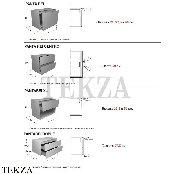 Варианты высоты тумбы: 25, 37,5, 50 см