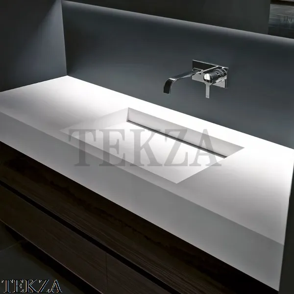 Варианты расположения раковин: накладная, встраиваемые, интегрированная.