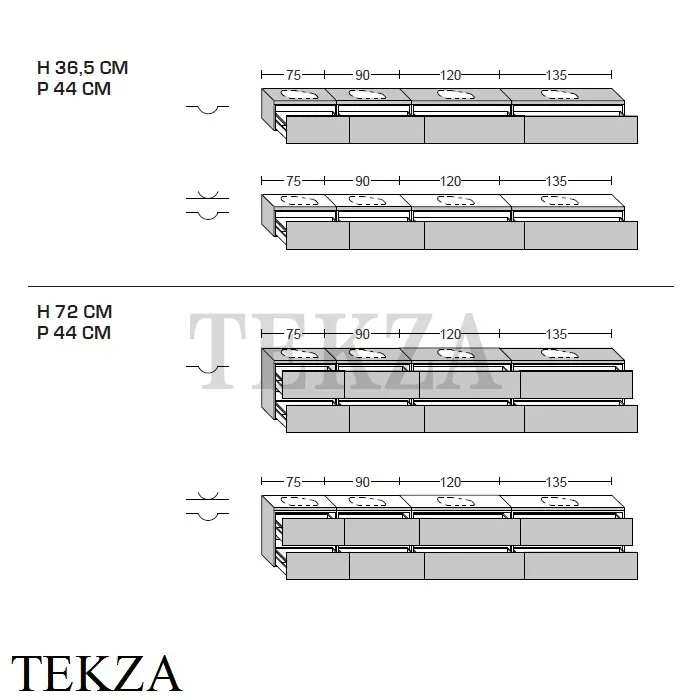 Наличие компонуемых модулей в большинстве серий, Клиент имеет возможность удобную по размеру и глубине мебель.