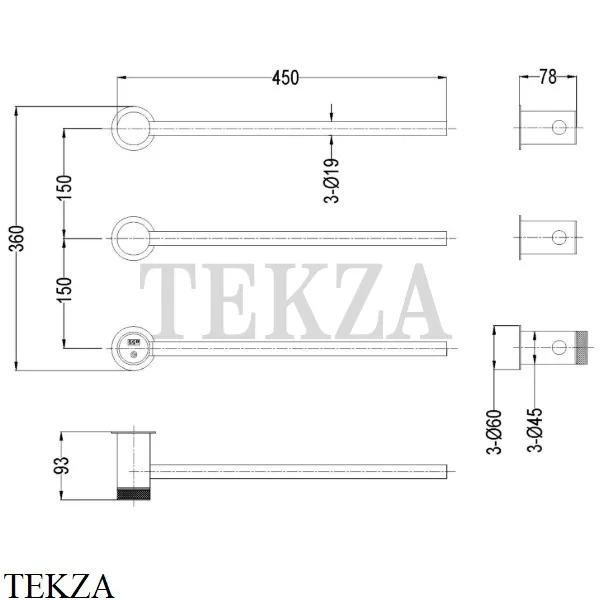 Полотенцесушитель электрический стержневой с выключателем Boheme Stick.