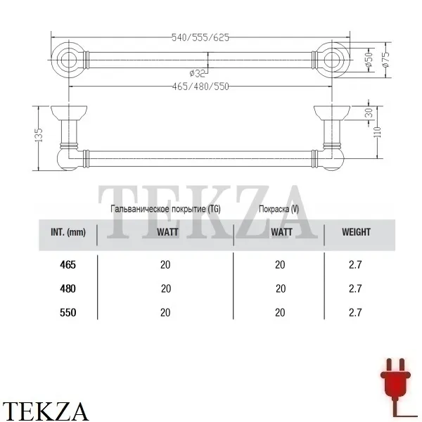 обогреваемая штанга для полотенец.