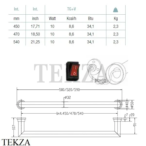 Полотенцесушитель Margaroli Sereno 621 электрический, выключатель BOX справа.