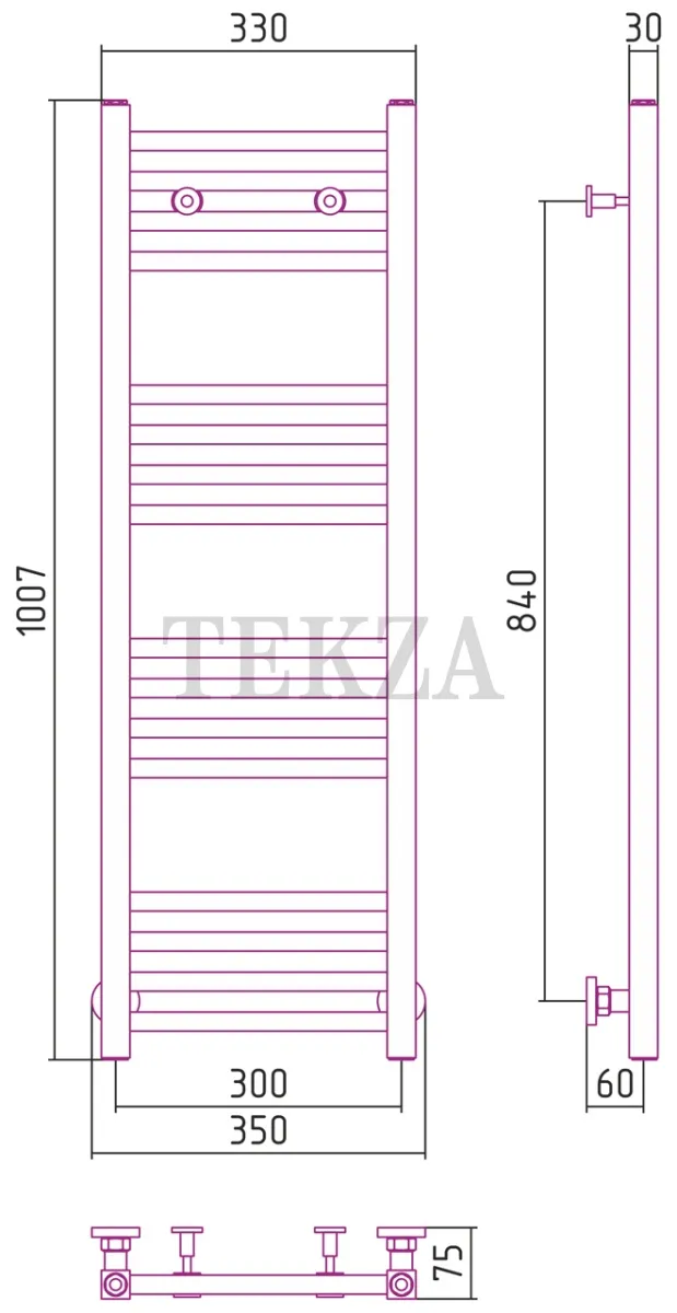 Дизайн радиатор Сунержа полотенцесушитель водяной МОДУС 1000х300 (Без покрытия) Рабочее давление от 3 до 15 атм