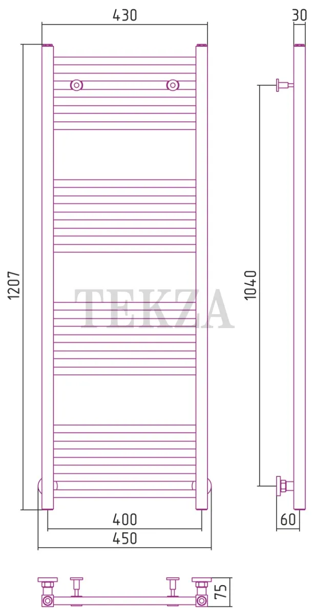 Дизайн радиатор Сунержа полотенцесушитель водяной МОДУС 1200х400 (Тёмный титан муар) Рабочее давление от 3 до 15 атм