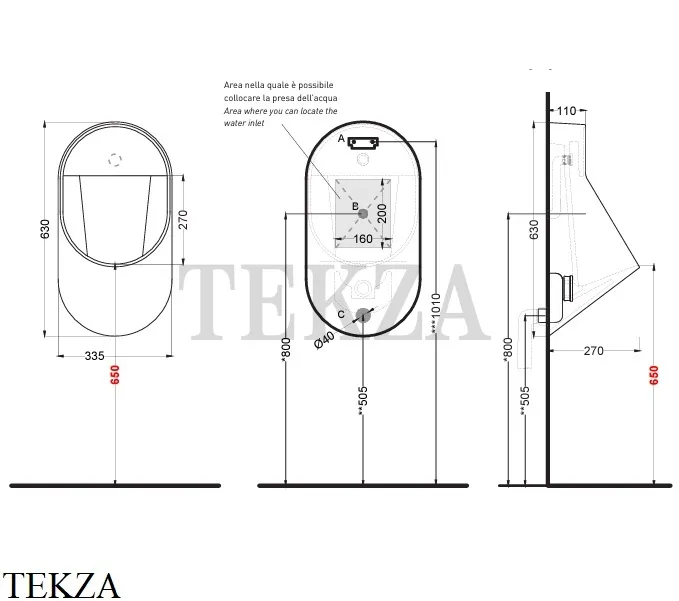 Писсуар подвесной, для встроенной системы смыва Cielo ERA.