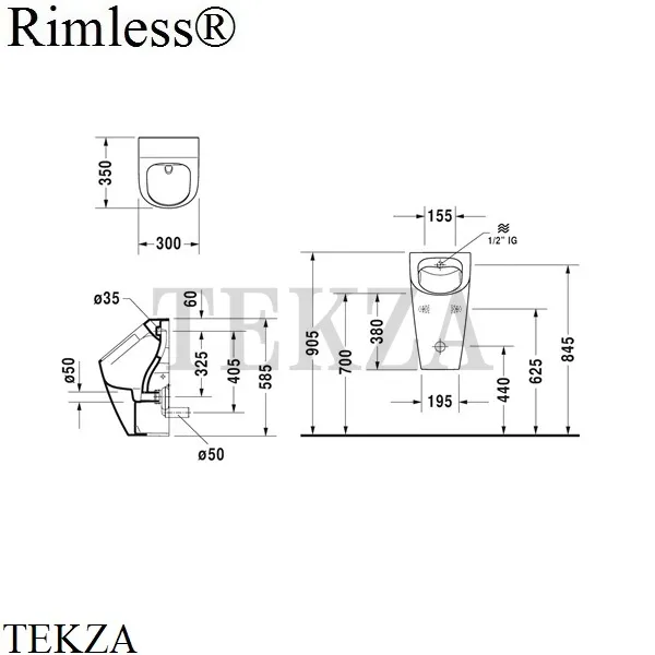 Писсуар Duravit ME by Starck, без смывного края Rimless