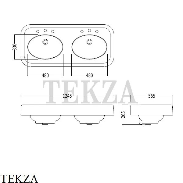 Раковина двойная для консоли Devon&Devon Blues с переливом.
