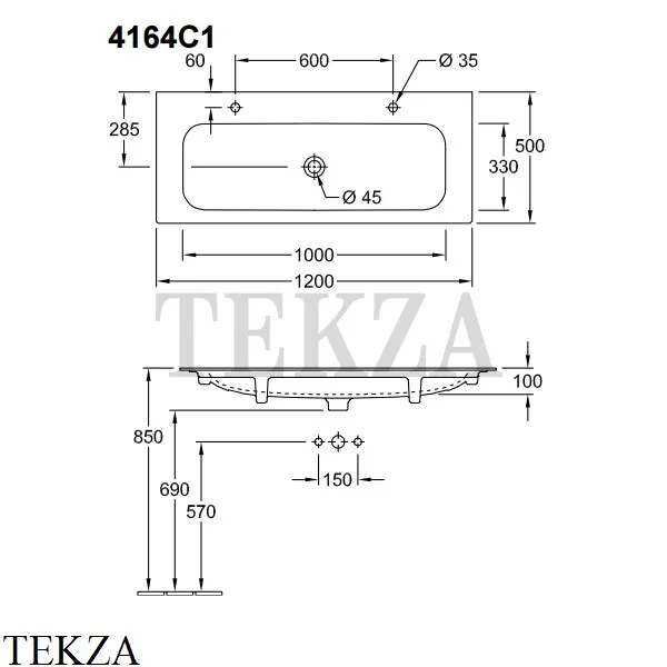 Раковина для установки на тумбу Villeroy & Boch FINION 4164 C1 XX без перелива