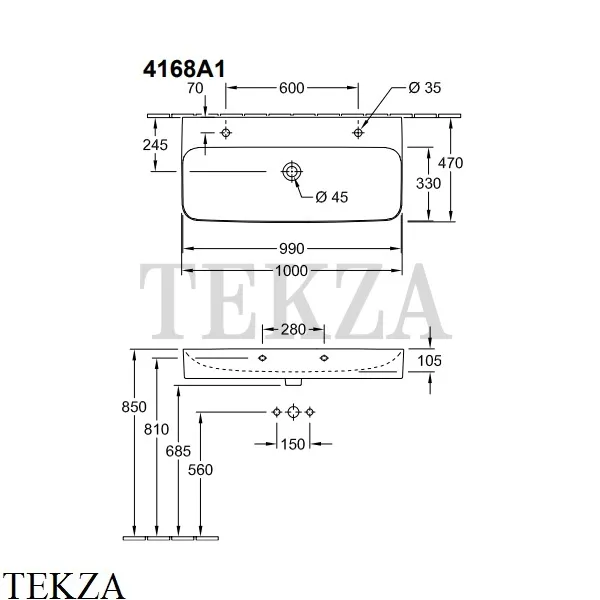 Раковина подвесная Villeroy & Boch FINION 4168 A1 XX без перелива