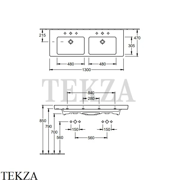 7175D101 - для 2 смесителей, с 1 или 3 отверстиями под смеситель , без перелива