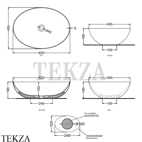 Раковина овальная накладная Cielo Eco 62 Oval.