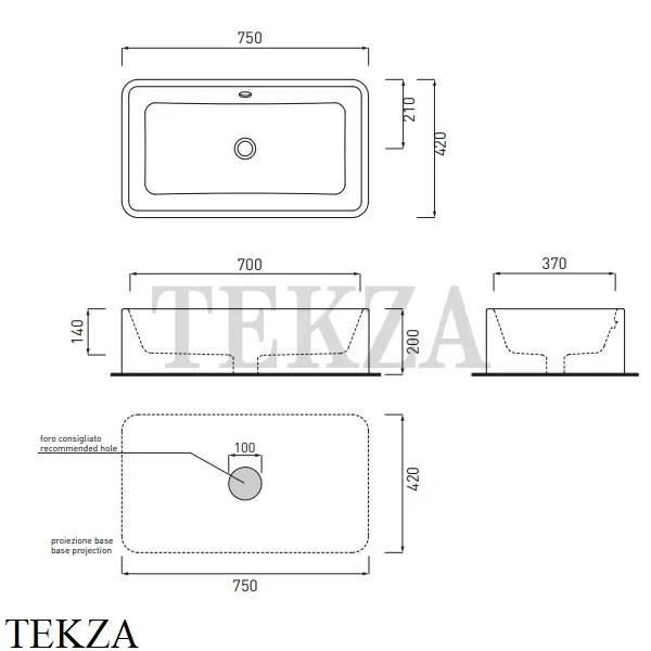 Раковина накладная прямоугольная 75 Cielo SHUI с переливом.