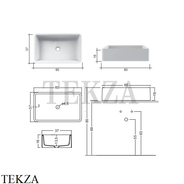 Раковина накладная прямоугольная 60 NIC Design Semplice, без перелива