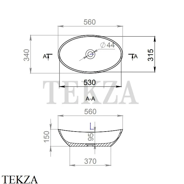 Раковина накладная, без перелива SALINI NOEMI из минерального литья S-Sense, глянцевая.
